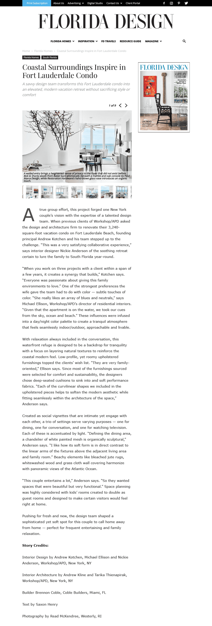 “Coastal surroundings inspire Ft. Lauderdale condo” by Saxon Henry