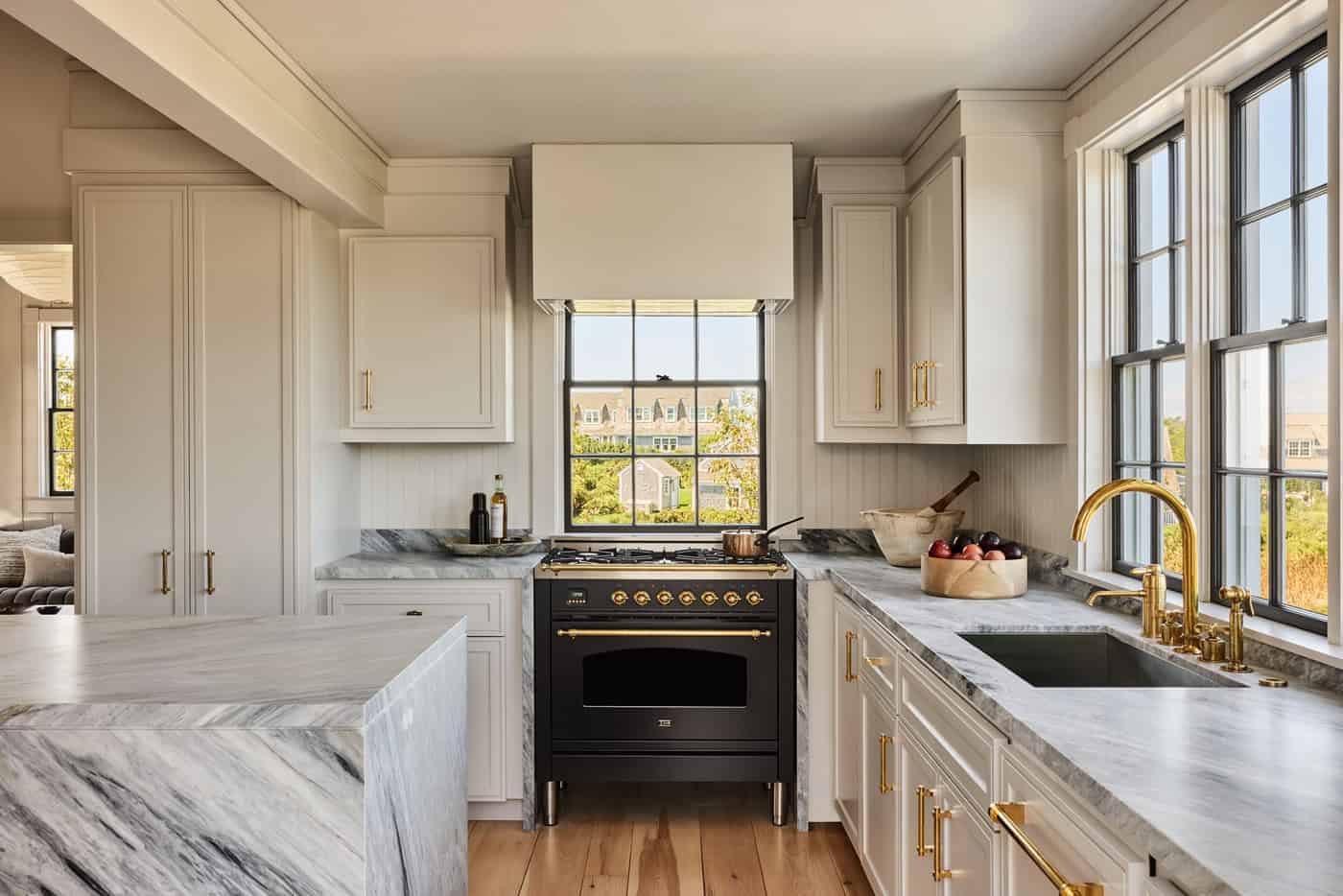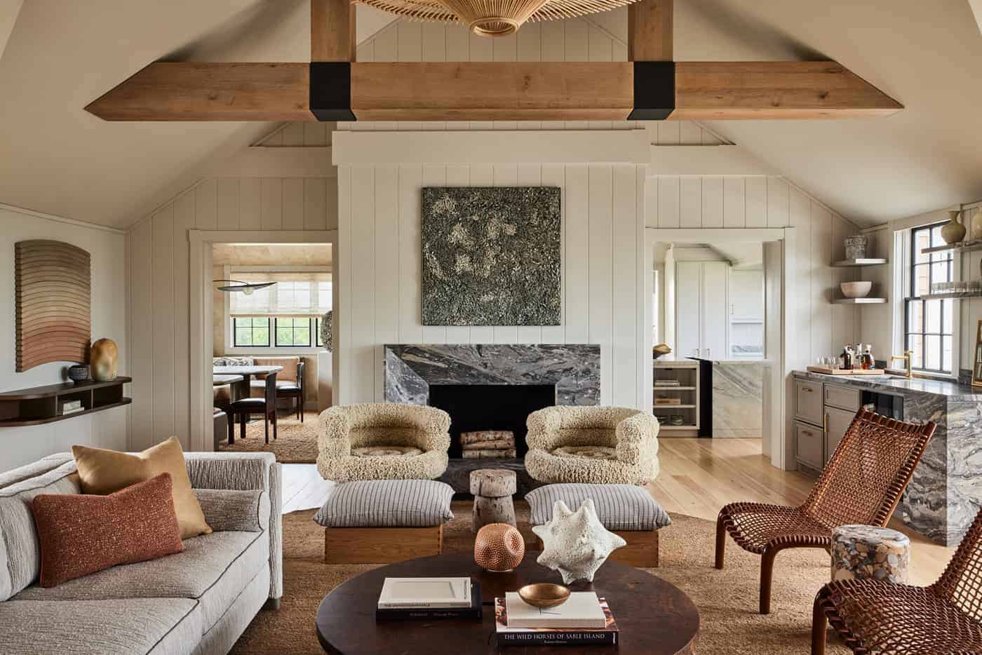 Overlooking the Atlantic Ocean, this prominent house is the 4th project Studio Michael Ellison has completed for this client. Only the clients and Studio Michael Ellison saw the hope and possibility this house had to offer. By updating the finishes, removing outdated décor and millwork and adding soft, muted tones to dominate the space, Studio Michael Ellison fostered a calming atmosphere. – all the while creating a sophisticated environment perfect for relaxation and socializing. When completed the house was given the title, “The New Nantucket” by House Beautiful.